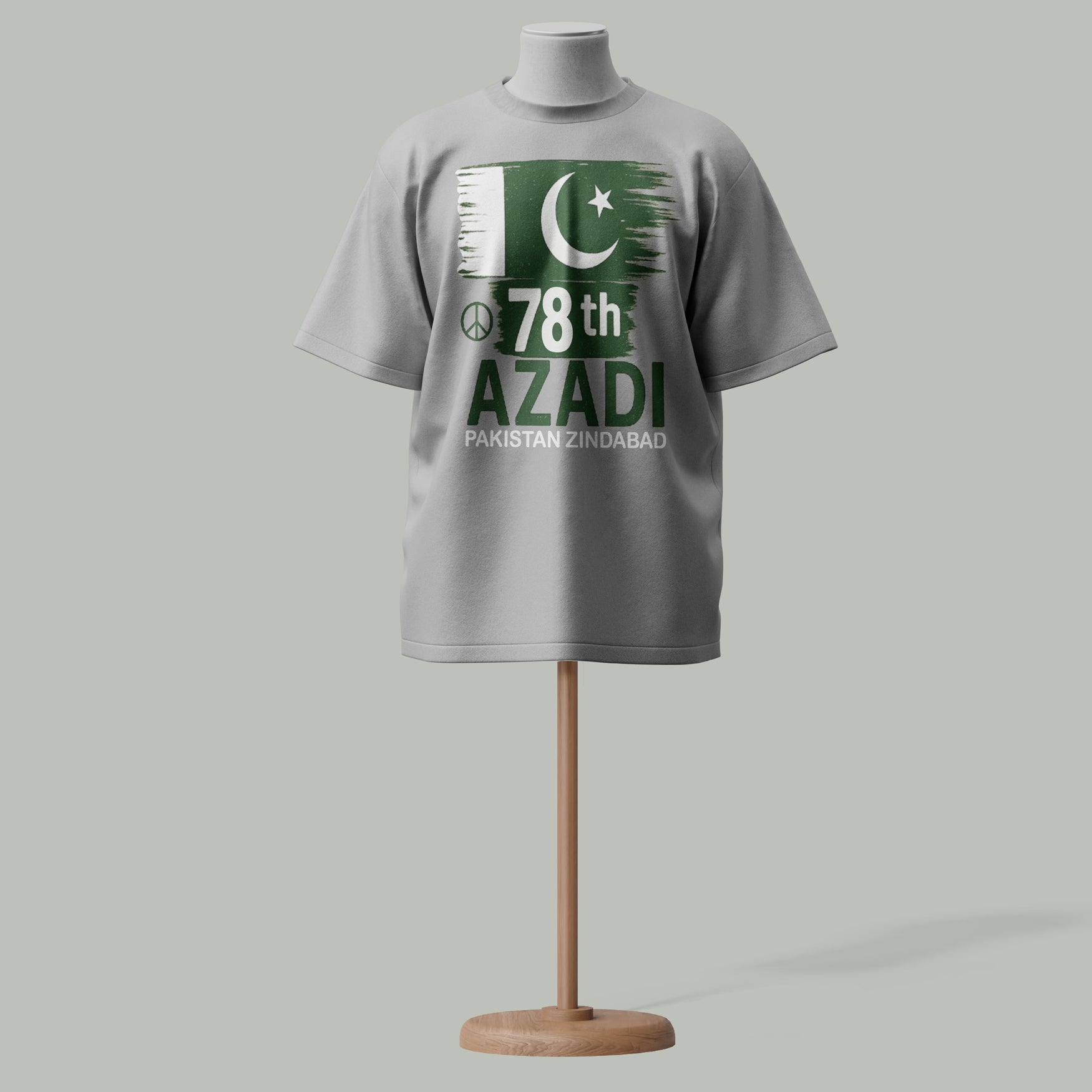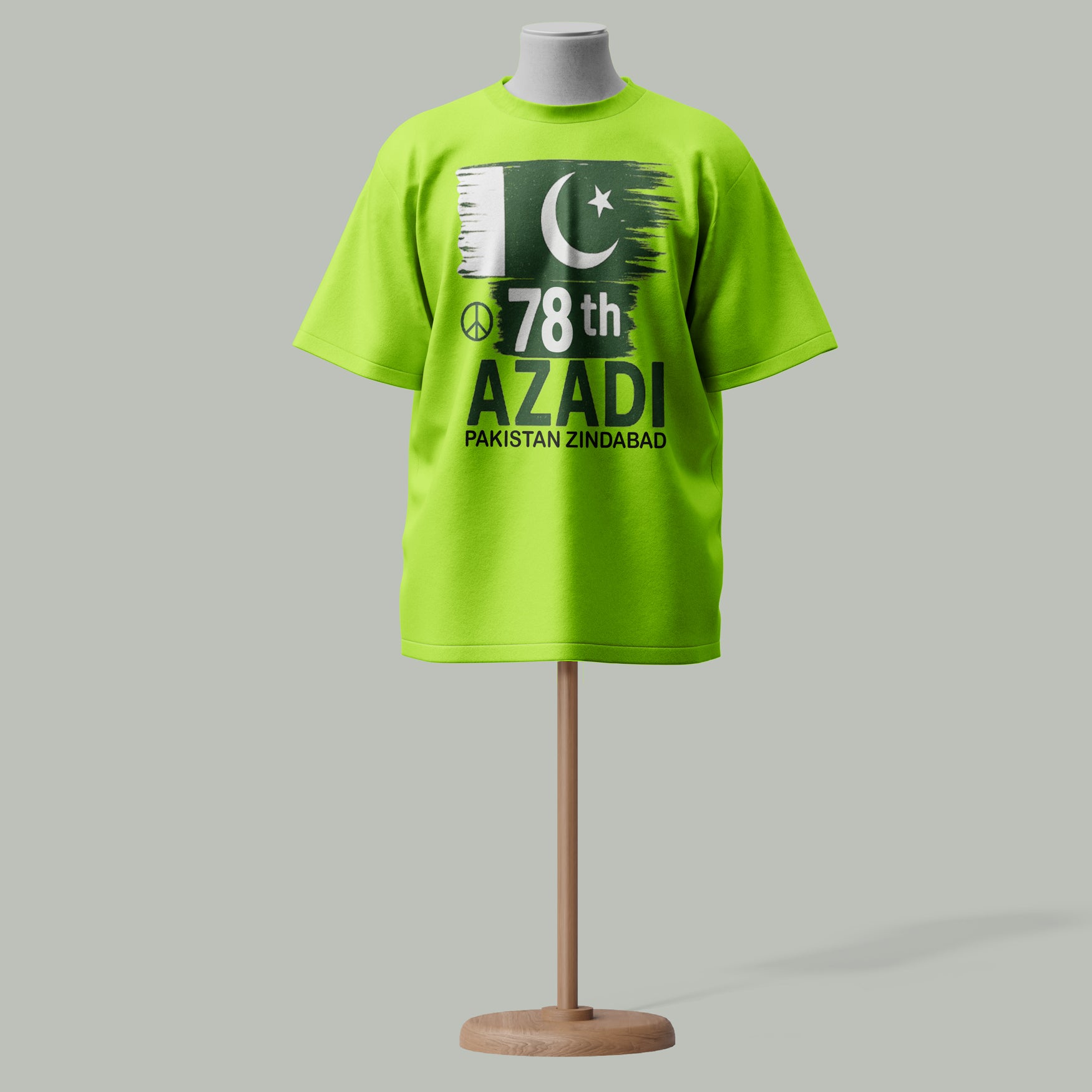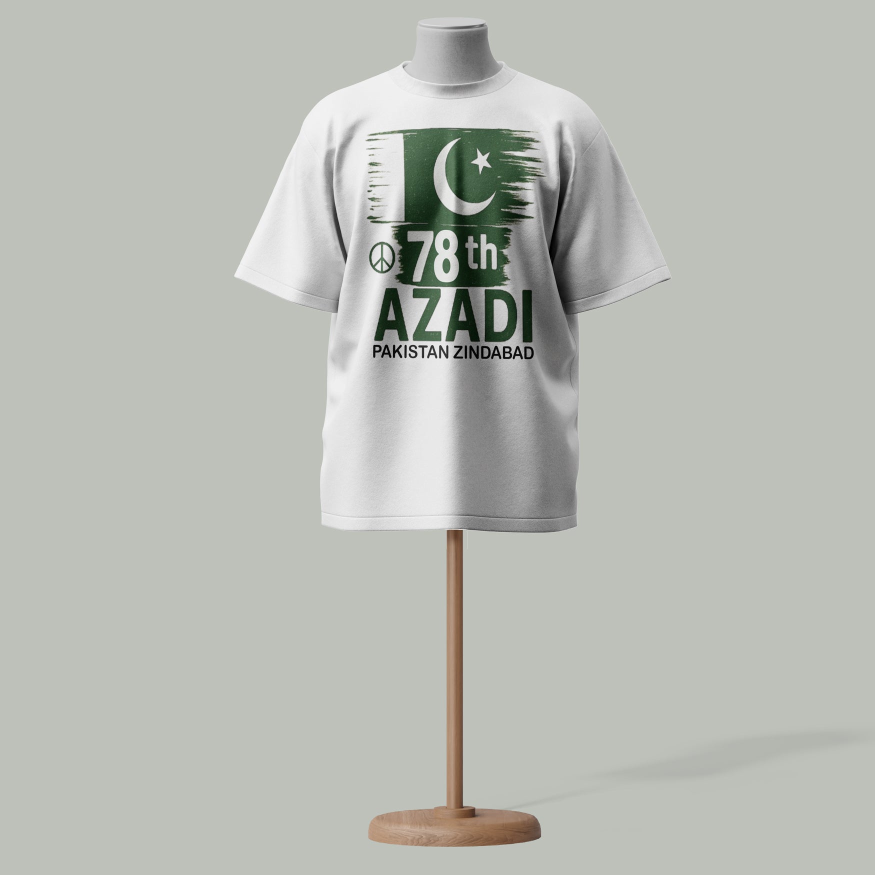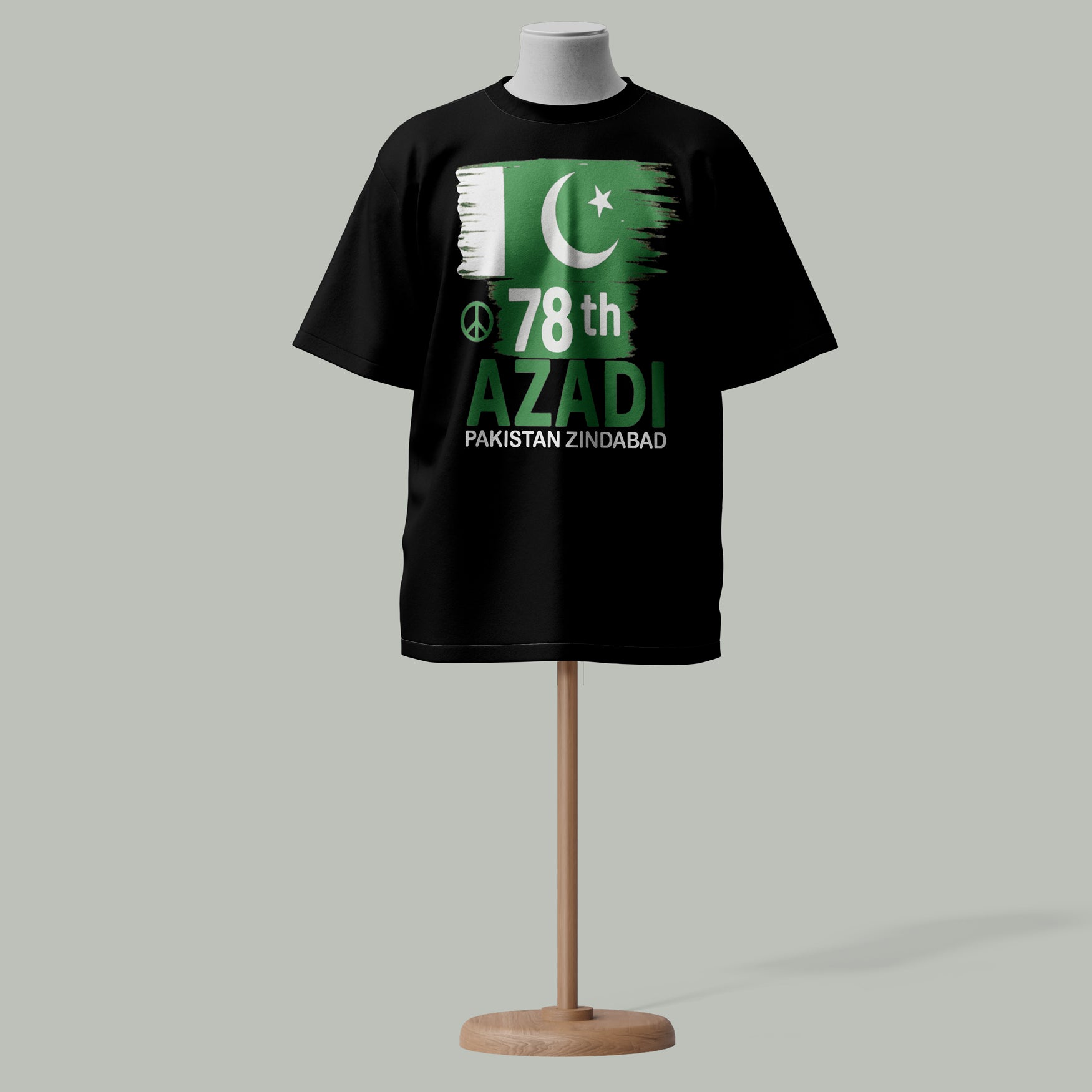 Bold Flag Design - Featuring a stylized flag with crescent, star, peace symbol & “78th Azadi” + “Pakistan Zindabad” text