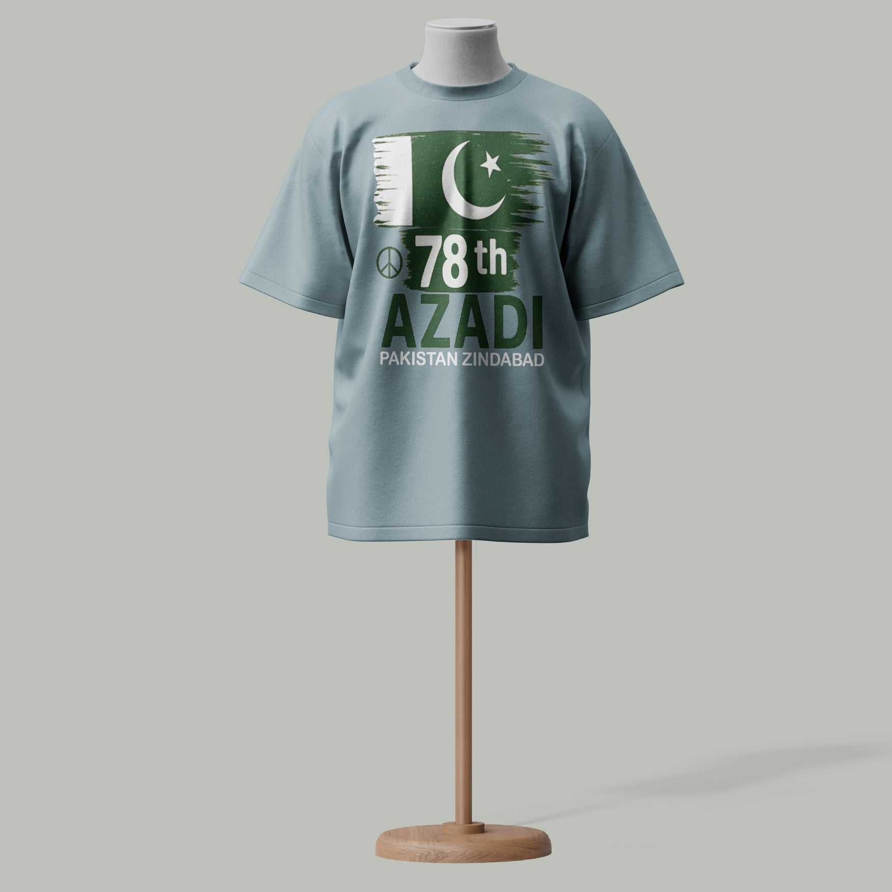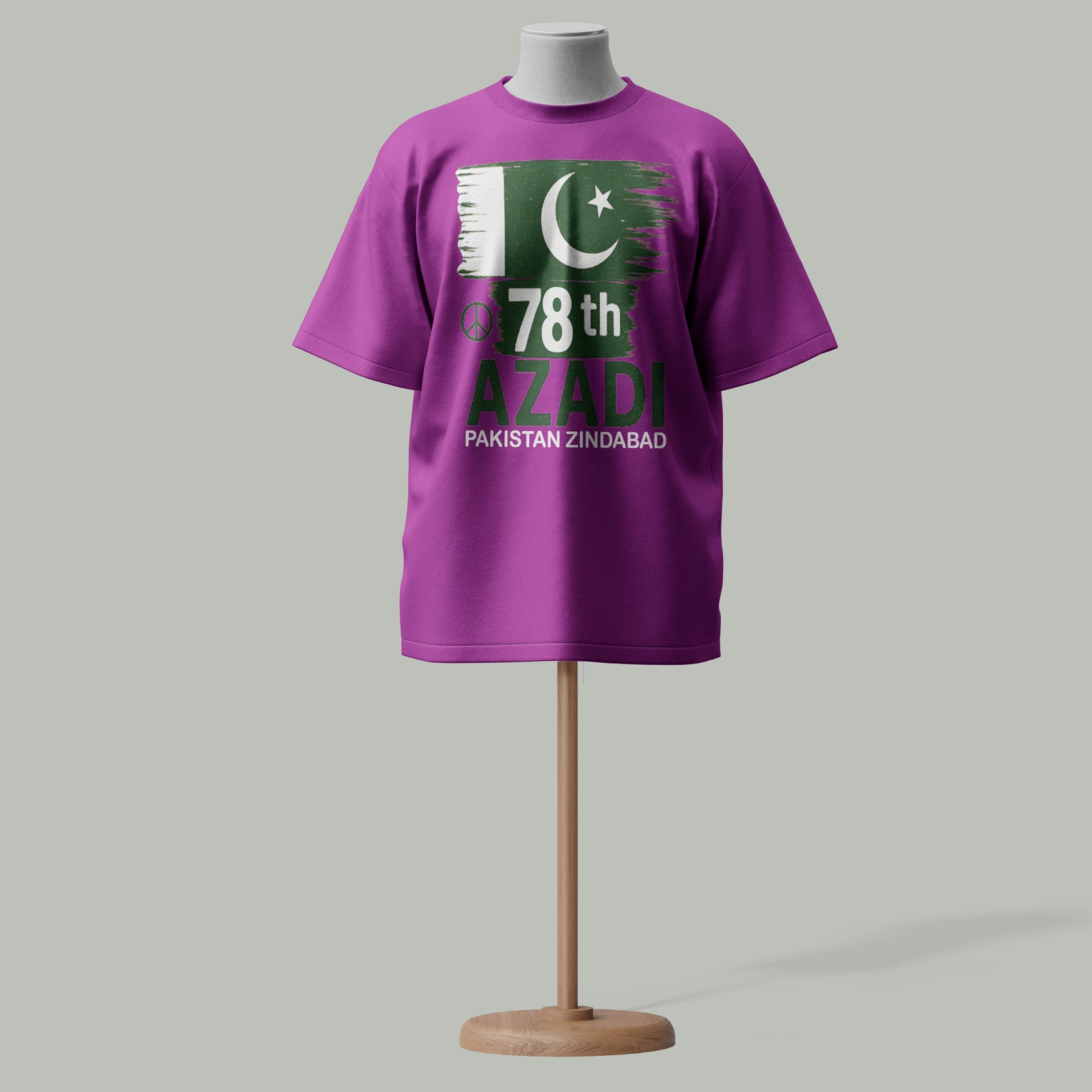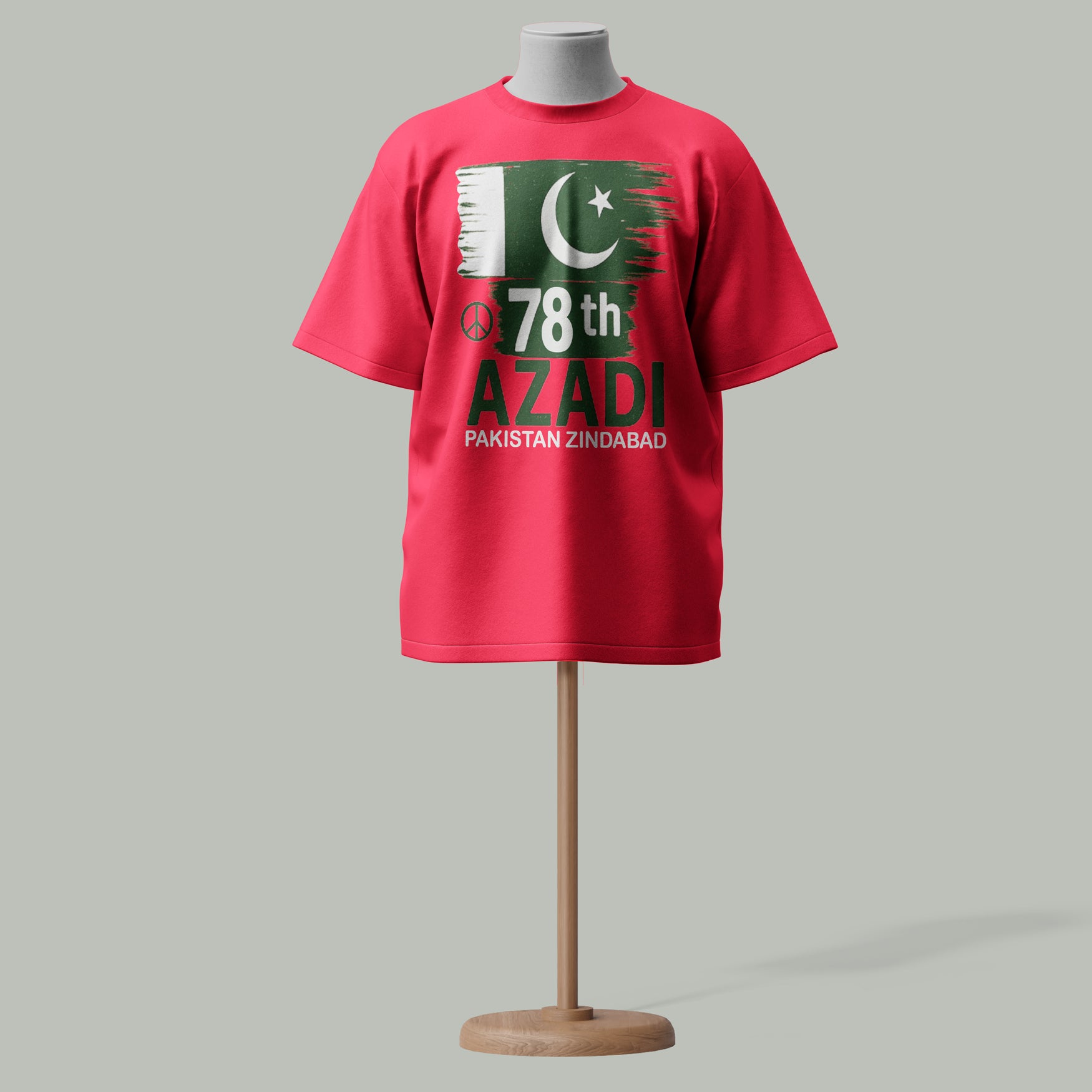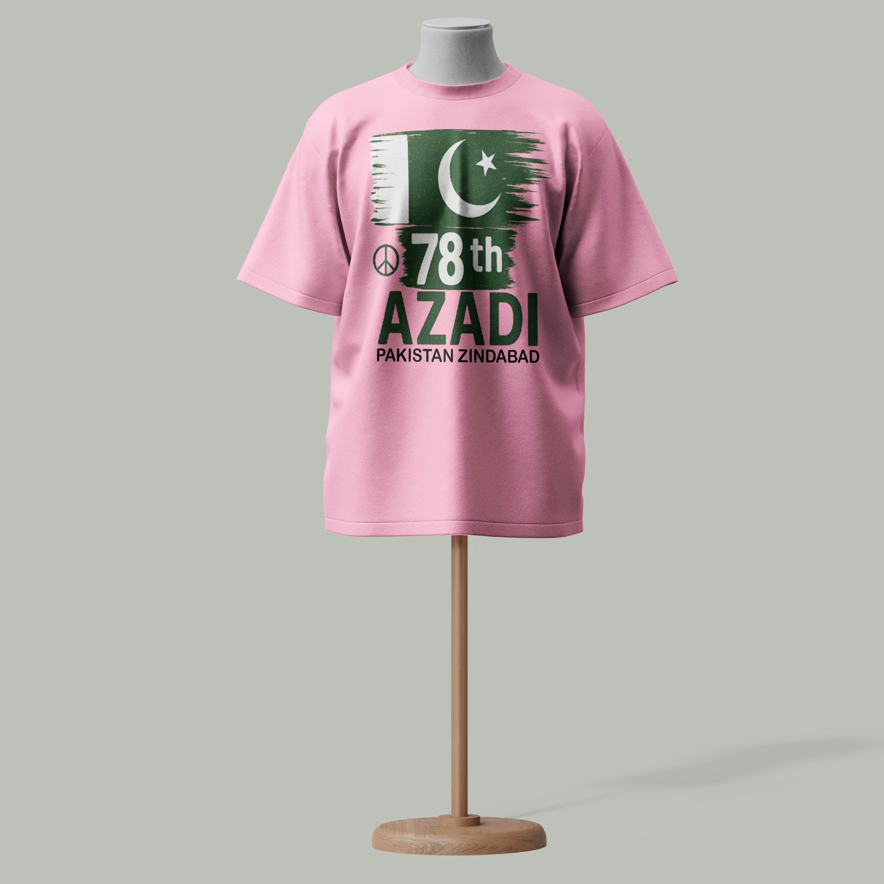 Bold Flag Design - Featuring a stylized flag with crescent, star, peace symbol & “78th Azadi” + “Pakistan Zindabad” text